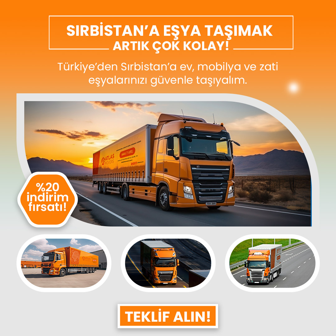Sırbistan’a taşınırken profesyonel destek almak, tüm süreci sorunsuz ve güvenli hale getirir. Atlas Lojistik olarak, Türkiye’den Sırbistan’a ev taşıma sürecinizde yanınızdayız. Hızlı, güvenilir ve gümrük süreçlerine hakim uluslararası taşımacılık hizmetimizle; eşyalarınız zamanında ve sorunsuz şekilde yeni adresinize ulaştırılır.